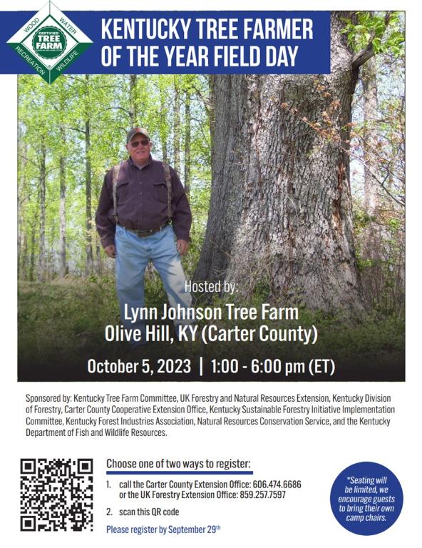 Sponsored by: Kentucky Tree Farm Committee, UK Forestry and Natural     Resources Extension, Kentucky Division of Forestry, Carter County Cooperative Extension Office, Kentucky Sustainable Forestry Initiative Implementation Committee, Kentucky Forest Industries Association, Natural Resources Conservation Service, and the Kentucky Department of Fish and Wildlife Resources.